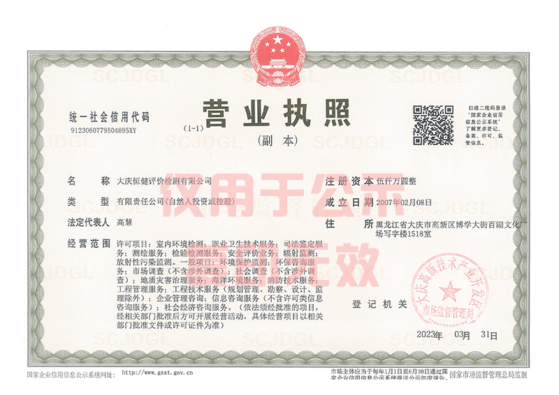 大慶恒健評(píng)價(jià)檢測(cè)有限公司(以下簡(jiǎn)稱(chēng)公司)是2007年2月8日依法注冊(cè)成立的,注冊(cè)資本800萬(wàn)元,統(tǒng)一社會(huì)信用代碼9123060779504695XY,是具有獨(dú)立企業(yè)法人資格的專(zhuān)業(yè)技術(shù)服務(wù)機(jī)構(gòu),屬于獨(dú)立民營(yíng)第三方檢測(cè)機(jī)構(gòu)。
