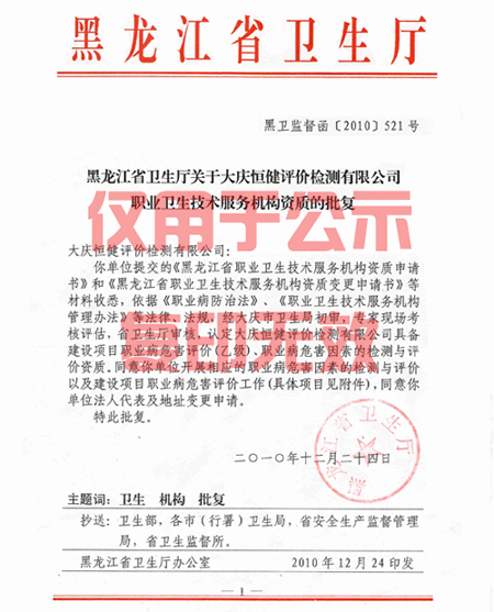 職業(yè)衛(wèi)生資質(zhì)批復(fù)